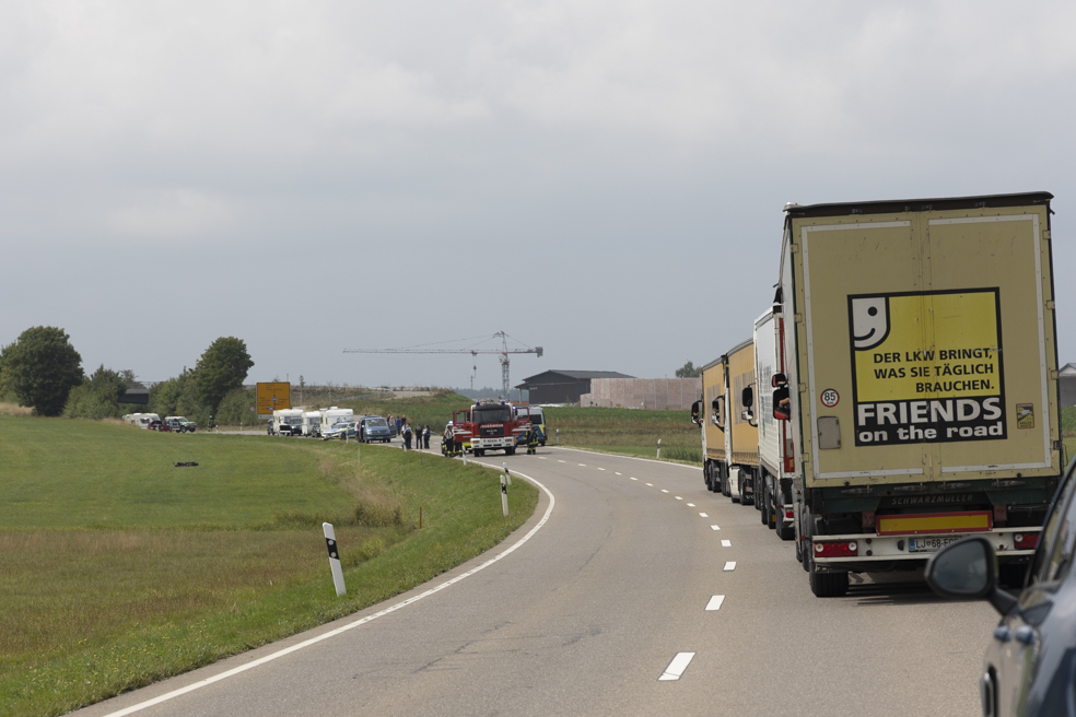 Kaum haben wir den ersten Schrecken überwunden, ist die Straße gesperrt. Es sind mehrere Feuerwehrfahrzeuge und Polizei vor Ort. Nach einigem Kartenstudium finden wir eine Ausweichroute und können mit einem weiteren Umweg weiterfahren. In Freiburg stehen wir dann ewig in einem 850 m langen Tunnel und anschließend geht es auch nur in Stopp and Go weiter – von einer (oft grünen) Ampel zur nächsten. Irgendwann sind wir wieder auf der Autobahn und kommen wieder besser voran.