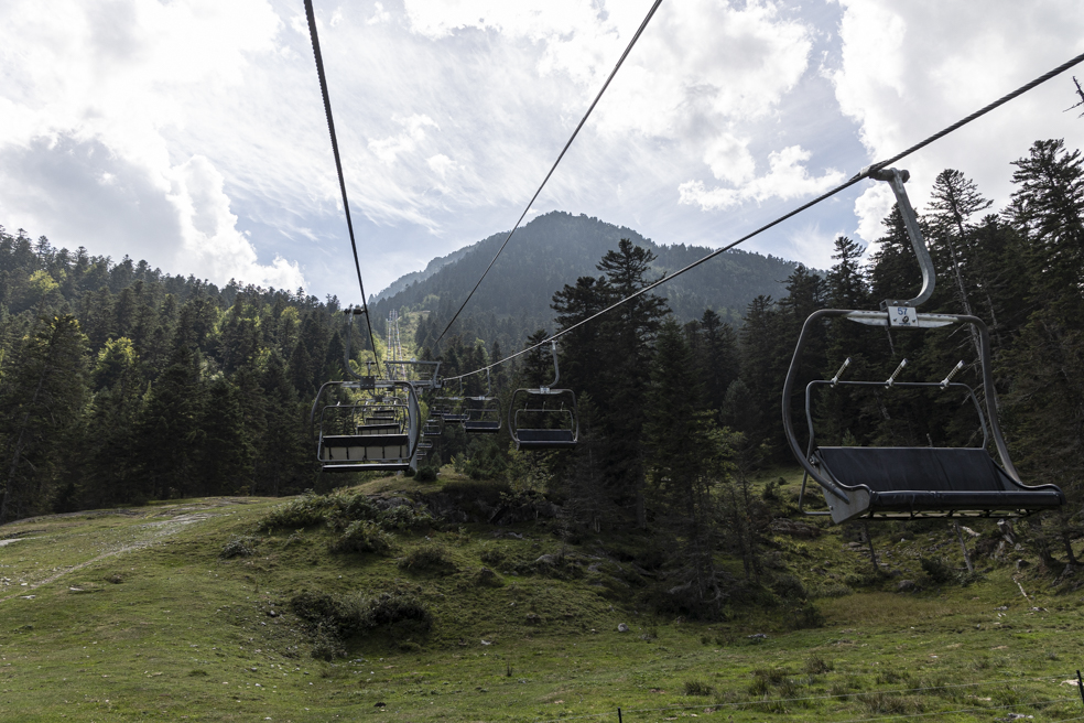 Als wir am 1. September 2022 gegen 15 Uhr ankommen, ist der größte Andrang vermutlich schon vorbei, aber es ist immer noch einiges los. Die Seilbahnfahrt verläuft ganz entspannt und die paar Meter zum Sessellift sind auch schnell geschafft. Die Auffahrt im Sessellift dauert dann etwas länger, weil er aus unerfindlichen Gründen immer wieder anhält, zum ersten Mal schon nach wenigen Minuten. Nachdem uns in luftiger Höhe auch ein recht frischer Wind um die Nase weht, fühle ich mich teilweise nicht mehr besonders wohl, so über dem Abgrund schwebend bzw. schaukelnd. Endlich geht es weiter, zumindest ein paar Meter. Dann steht der Lift wieder. Und so geht es im Stopp und Go weiter. Ich überlege ernsthaft, den Rückweg zu Fuß zu machen, aber laut Reiseführer ist das eine ziemlich öde Angelegenheit.