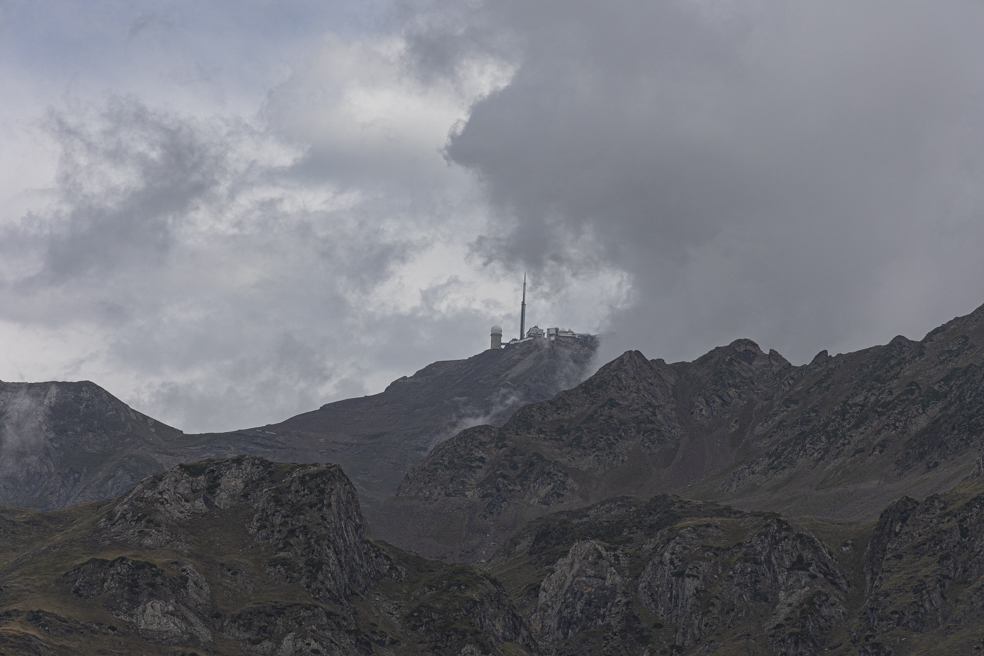 Der Pic du Midi de Bigorre gehört mit seinem viel gerühmten Panorama, dem Observatorium und einem Sternenmuseum zu den offiziellen Höhepunkten der französischen Pyrenäen. Leider hüllt sich bei unserer Fahrt am 02.09.2022 die Landschaft in Wolken und dichten Nebel. Dass wir von der grandiosen Umgebung nichts sehen, ist dabei eher ein Luxusproblem. Unser Hauptproblem ist, dass wir teilweise die enge und kurvenreiche Straße kaum noch sehen können, auf der auch zahlreiche Radfahrer und Vierbeiner unterwegs sind. Um die Mittagszeit kommen zu dem dichten Nebel noch Donner und starker Regen dazu.