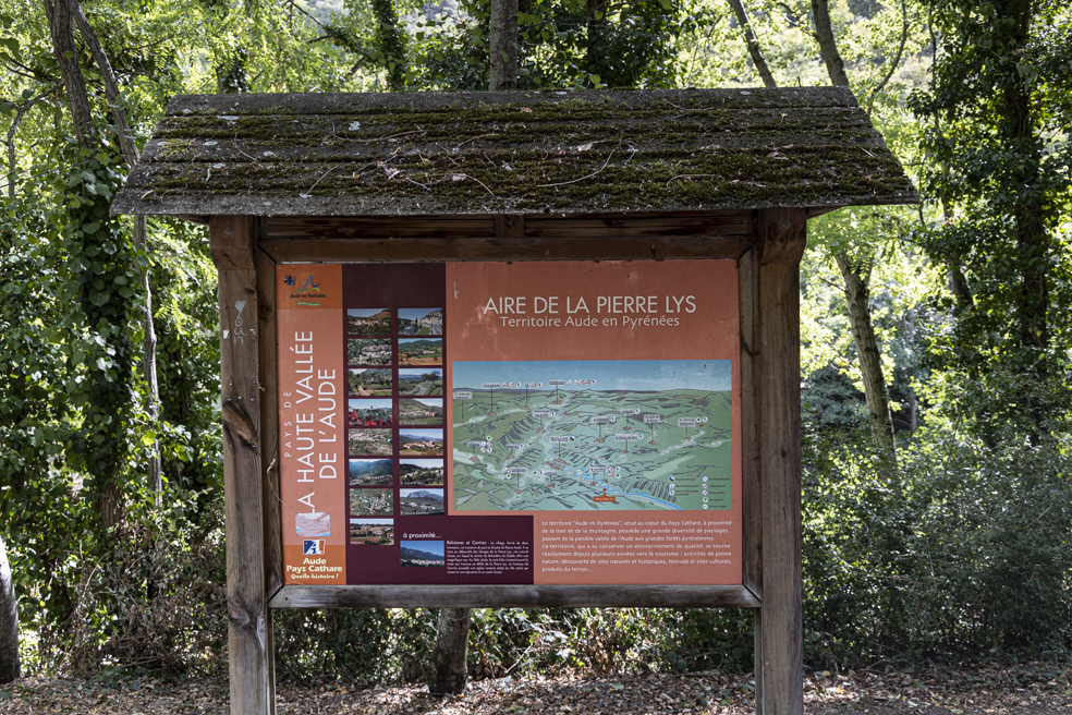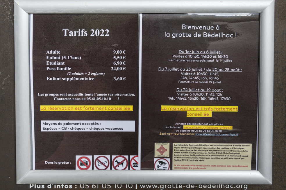 Dass sich die Sonne immer öfter hinter den rasch zunehmenden Wolken versteckt, macht uns zunächst nicht viel aus, weil wir ohnehin die Grotte de Bédailhac mit ihren prähistorischen Wandmalereien besichtigen wollen. Die ist leider geschlossen. Einem Plakat am Kassenhäuschen können wir entnehmen, dass die Höhle am Tag zuvor zum letzten Mal offen war, also am letzten Ferientag in Frankreich. Eigentlich wollten wir am Morgen noch die Öffnungszeiten im Internet nachschauen, aber leider haben wir das vergessen. Dass man in Höhlen mit prähistorischen Malereien grundsätzlich nicht fotografieren darf, ist ein schwacher Trost. Wir hätten uns den Umweg über eine weitere extrem enge und kurvenreiche Straße sparen können.