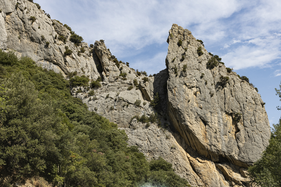 Leider geht der Tag nach den bizarren Orgues nicht so gut weiter wie er begonnen hat. Die Straße ist wieder sehr kurvenreich und mir ist teilweise ein wenig übel. Die Ortschaften wirken eher traurig, aber unser Schwerpunkt liegt ohnehin auf Naturerlebnissen. Die Landschaft ist durchaus sehenswert. Oft verläuft die Straße durch steil aufragende Felswände, dann fühlen wir uns wieder fast wie zu Hause, wenn wir liebliche Hügel mit sattem Grün passieren. Dass die Flüsse kaum Wasser führen, ist nach dem extrem trockenen Sommer nicht verwunderlich.