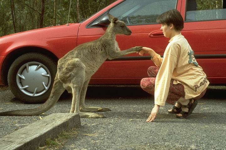 Die Tierfreundin findet überall schnell Kontakt zu Einheimischen. Übrigens kam das Känguruh auf uns zu. Wir respektieren den Lebensraum wilder Tiere. Auch zu Hause zieht es uns in die Natur, am liebsten in die Berge oder in den Bayerischen Wald.
